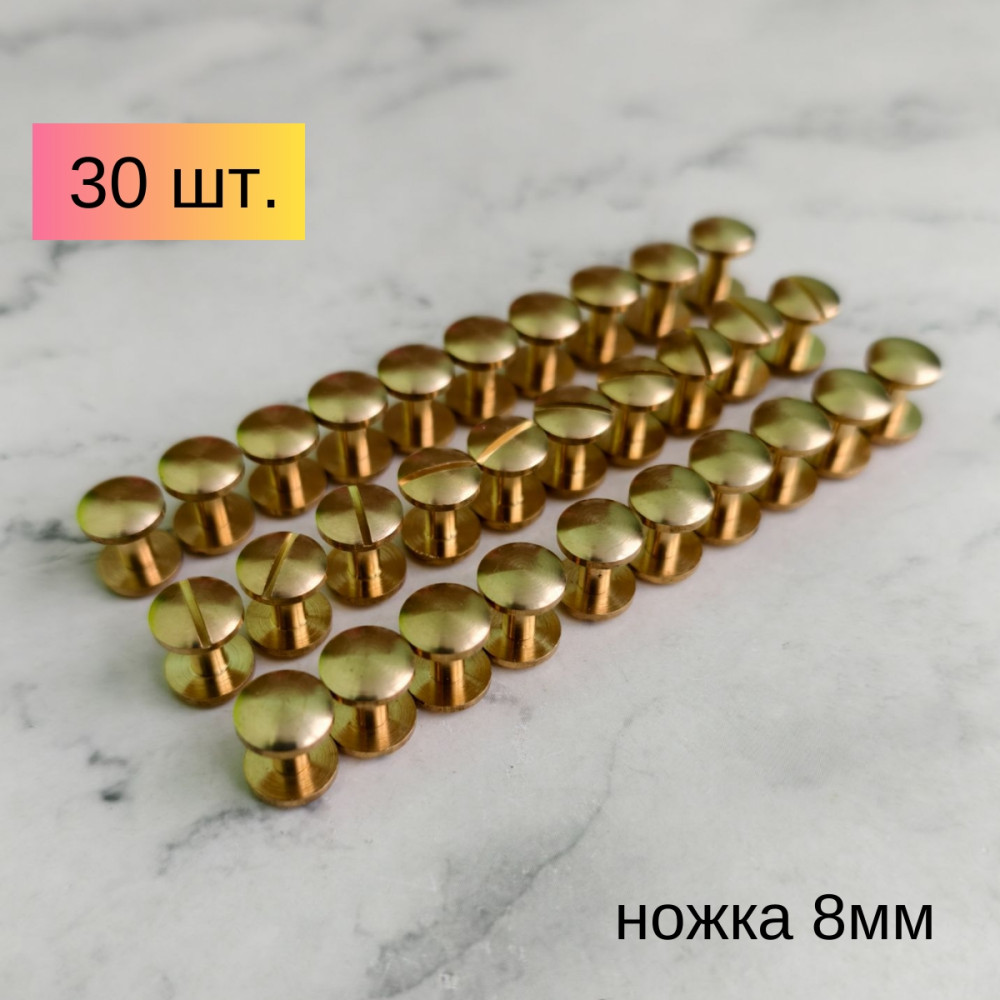 Винты ременные, латунные, шляпка полусферическая "линза". Данный винт широко применяется в кожевенном деле и служит для скрепления деталей из кожи. В комплекте - кнопка и винт для соединения. Размер.. Читать полностью