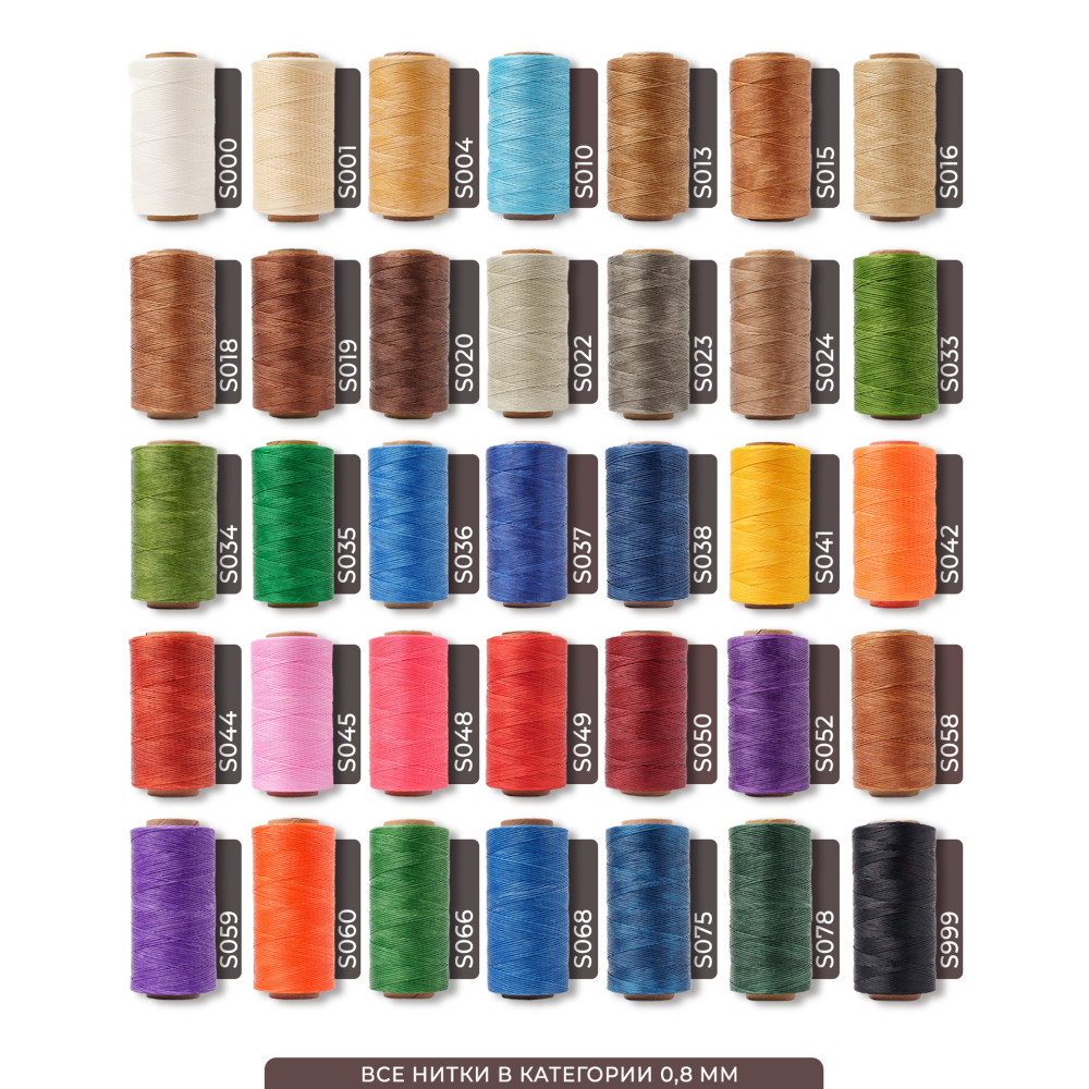 ⬛ Нити не выцветают и окрашены промышленным способом. При правильном шитье седельным швом, стежки ложатся в отверстия ровно и одинаково. Одна из самых недорогих на рынке полиэстеровых нитей для ручного шитья по коже, но обладает при этом отличным для своей цены качеством.
