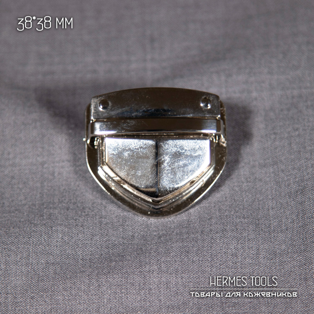 Портфельный замок. Вид фурнитуры использующийся в качестве застёжки для клапанов на портфелях, сумках рюкзаках и другой галантереи. Ширина: 38 мм Высота: 38 мм Цвет: Никель.. Читать полностью